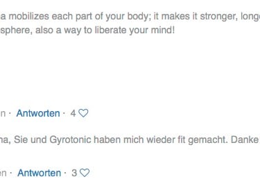 Schon in meiner aktiven Zeit als Tänzerin bin ich mit GYROTONIC EXPANSION SYSTEM® in Berührung gekommen was mich nachhaltig beeinflusst hat.